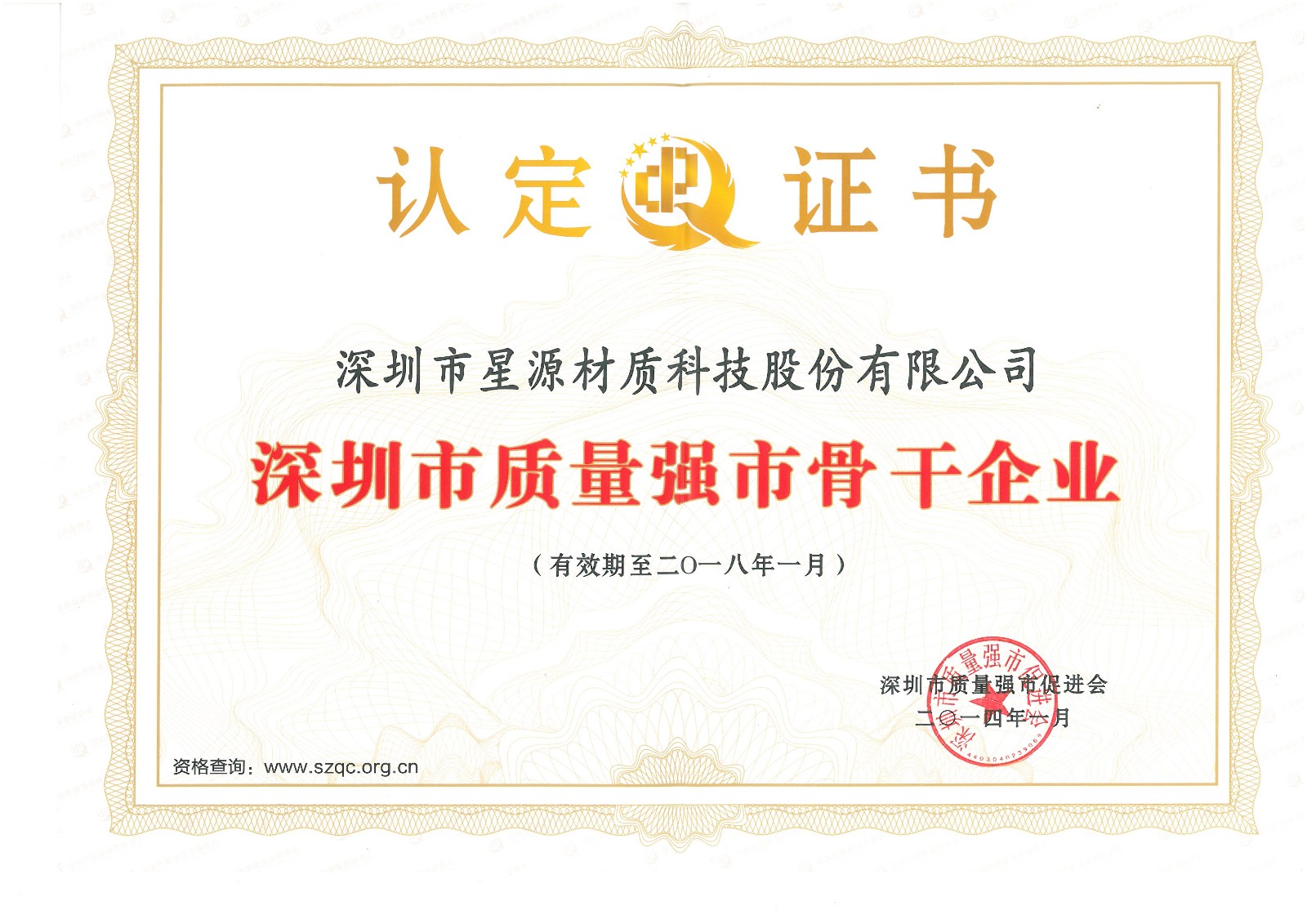 2018 | 深圳市质量强市主干企业证书 |