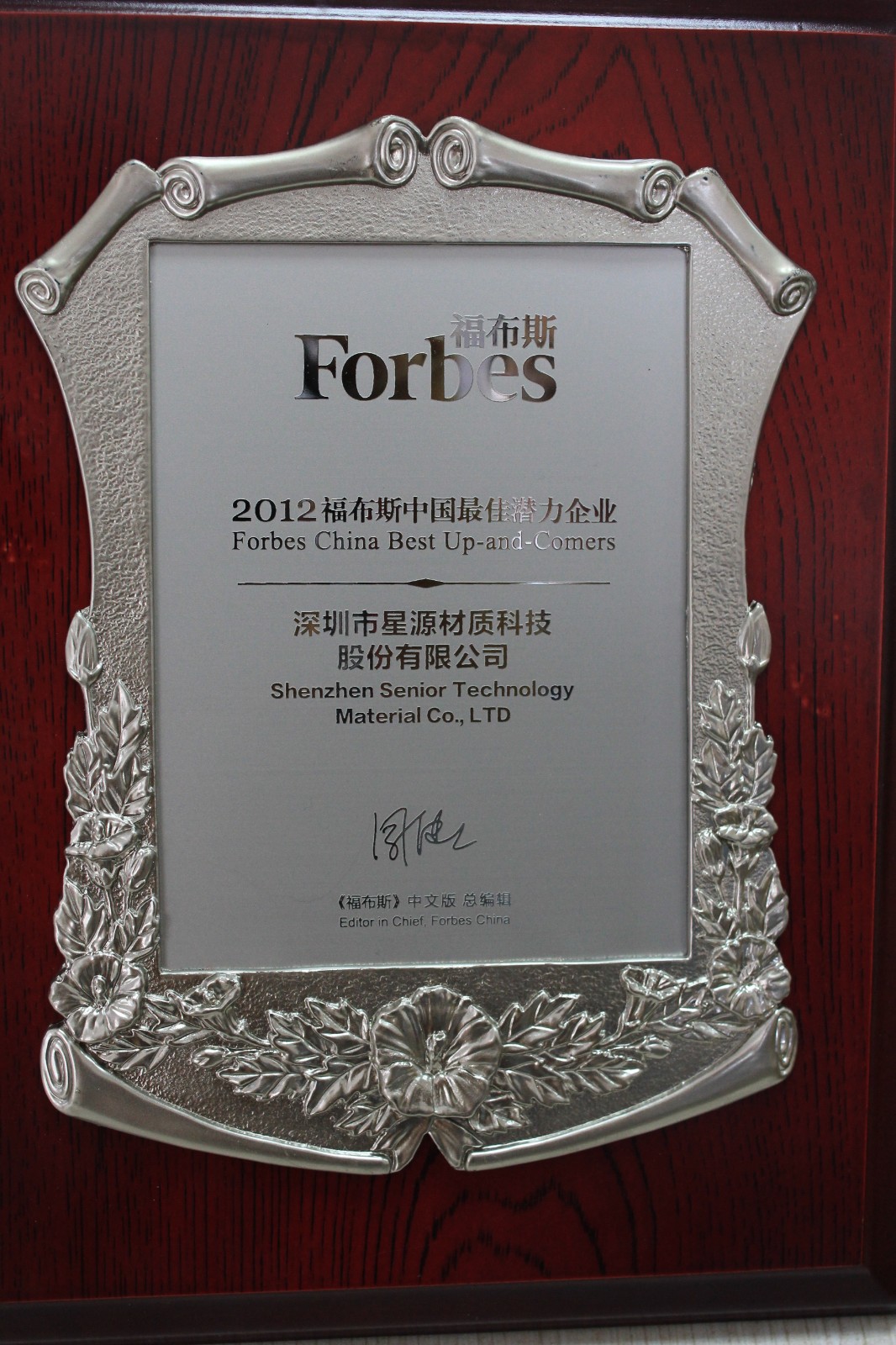 2012 | 福布斯中国最佳潜力企业 |