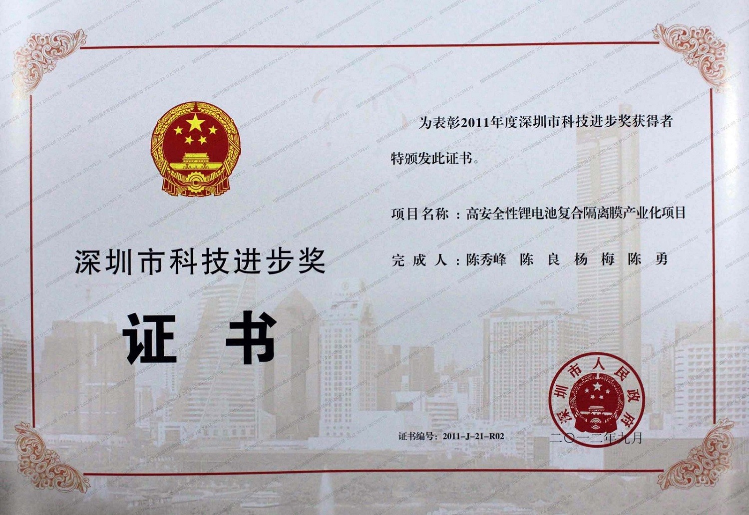 2011 | 深圳市科技前进奖 |