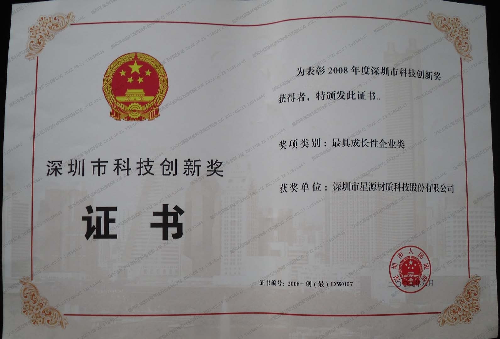 2008 | 深圳市科技立异奖 |
