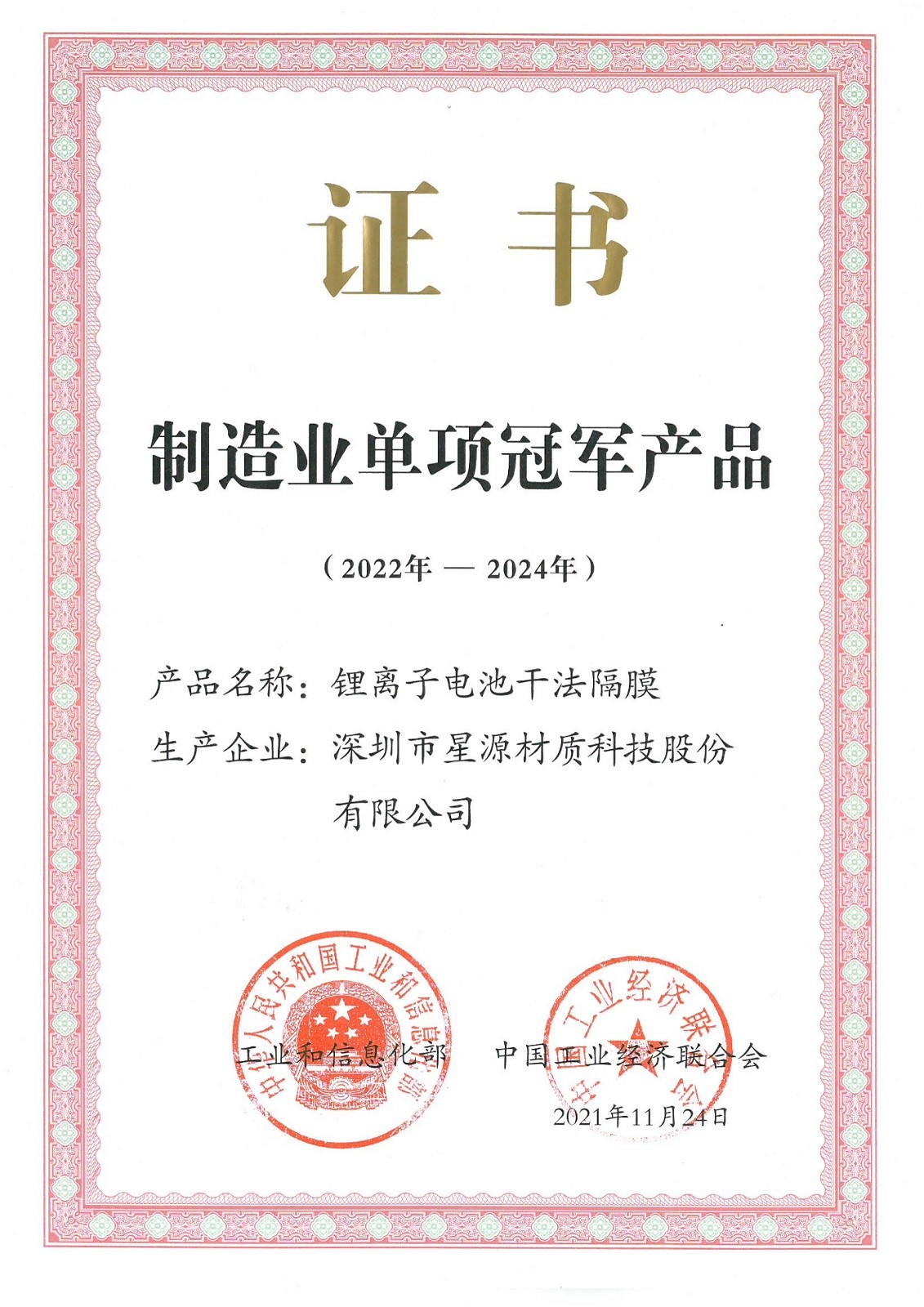 2021 | 制造业单项制造冠军 |